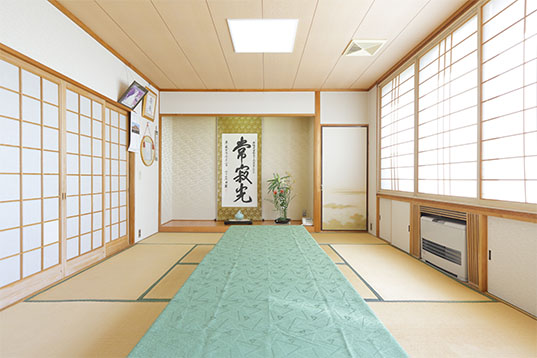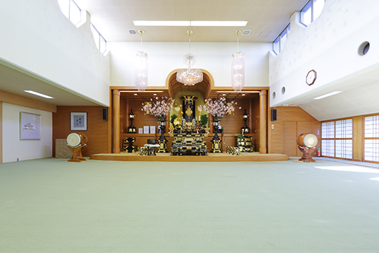 建物の概要は、本堂が内陣20畳を含む120畳の広さから成り、約30畳のロビーを挟んで8畳2間の控室が設けられ、他にも1階には応接間と庫裡3間が配置されています。また2階は、客間など5部屋の間取りとなっています。