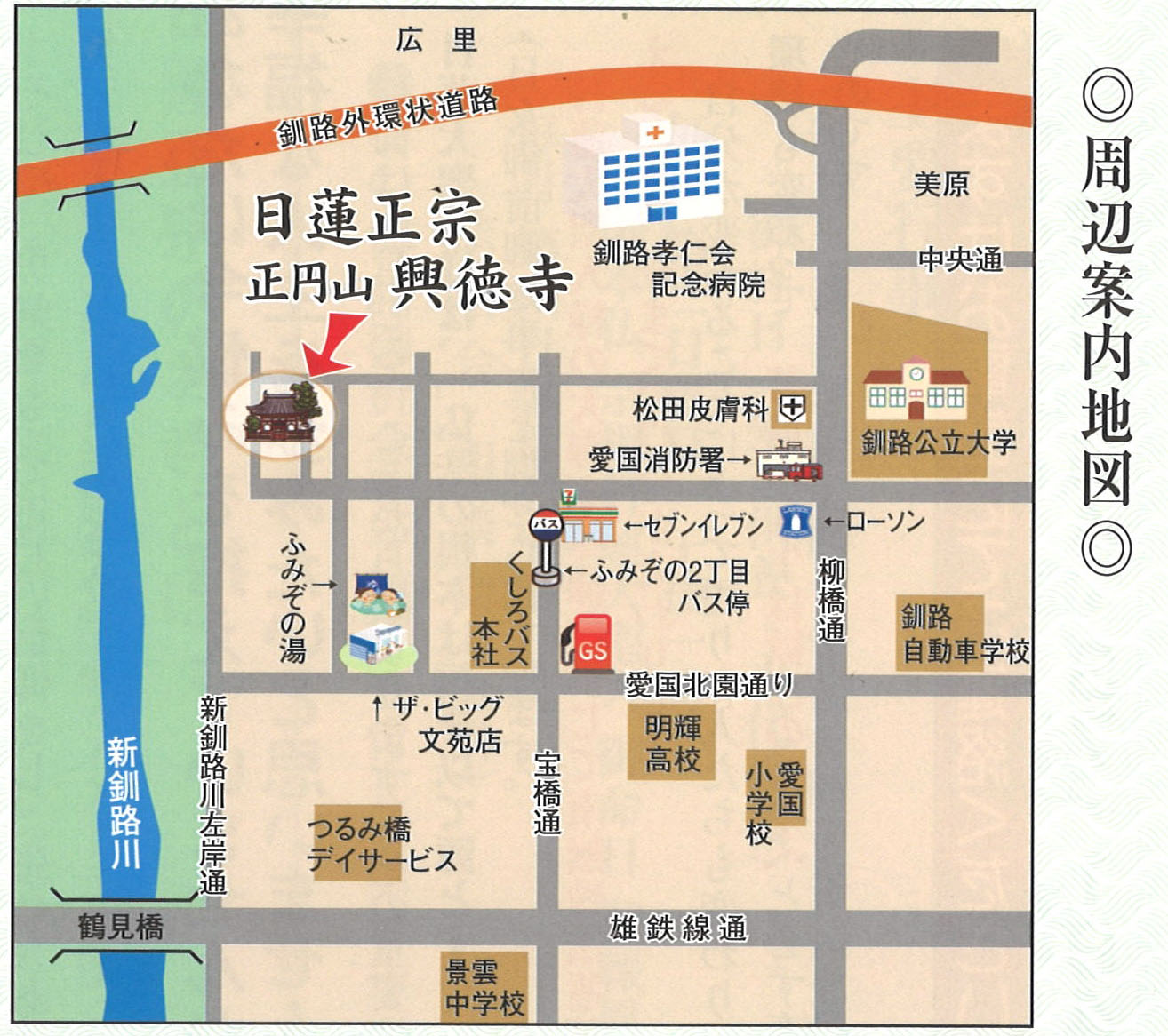 ・くしろバス「ふみぞの2丁目バス停」より徒歩10分